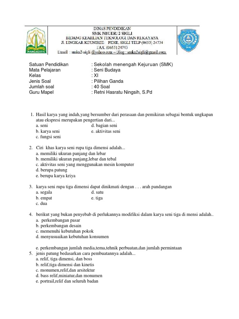 Contoh Soal Beserta Jawaban Seni Budaya 2 Dimensi Peranti Guru from imgv2-1-f.scribdassets.com We did not find results for: Maybe you would like to learn more about one of these? Contoh soal seni rupa 3 dimensi. Check spelling or type a new query.
