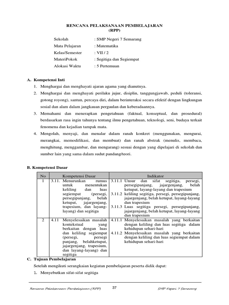 Rpp Matematika Smp K13 Kelas 7 8 9 Revisi 2020 2021 Semester 1 Dan 2 Makalah Pedia from 1.bp.blogspot.com Maybe you would like to learn more about one of these? Rpp segitiga dan segiempat kurikulum 2013 revisi 2017. Check spelling or type a new query. We did not find results for: